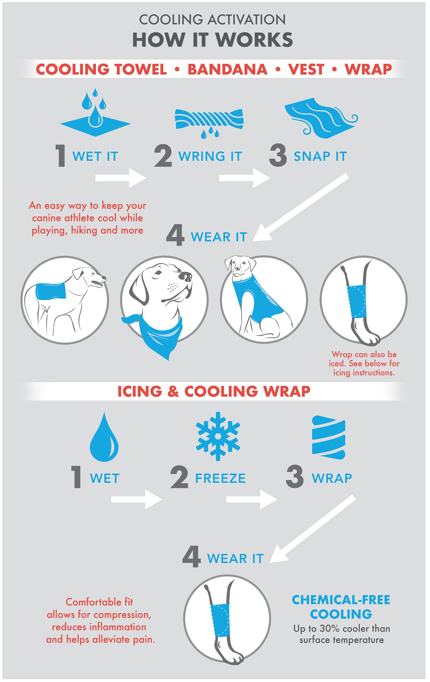 Watch the temperature of this wet Cooling Towel drop 20 degrees in a matter of seconds! Just a few snaps activates our patented Hyper Evaporative Cooling that cools up to 30% below skin temperature, effectively keeping your canine companion comfortable on even the hottest days.