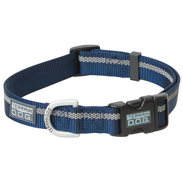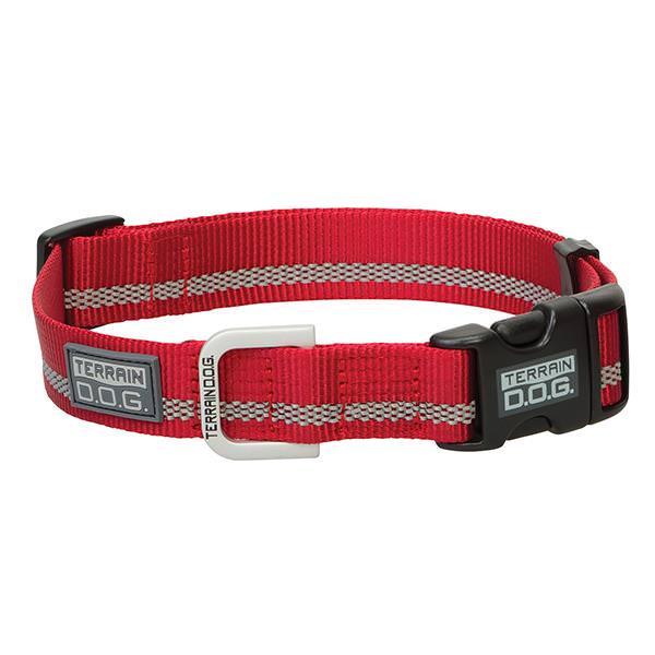 - Our single-ply nylon collar features a reflective safety stripe for increased visibility at night